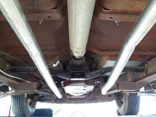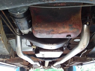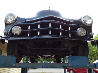 Exterior paint is hot rod satin black. The drivetrain is an 80's model Buick 455 V8 w/the same model column shifted automatic transmission suppling the power to the rear wheels. The car's original frame up front has been replaced with the same Buick sub frame. All of the glass is good & the front windshields are new & have new rubber moldings. The tires at all four corners are older bias ply wide white walls mounted on stock style steel wheels that are painted bright red. The car has a new set of Auto Meter gauges; not all are hooked up but the temperature & oil pressure gauges are hooked up & working. I have driven the car around a little bit and the tires are old (but have deep tread) & are severely out of round or flat spotted and are not safe for highway use. As far as the interior goes it consists of two cloth low back bucket seats & an ill fitting back seat, NO headliner, door panels or carpet. As for the floors there are two areas of rust that have been patched as the pictures depict.