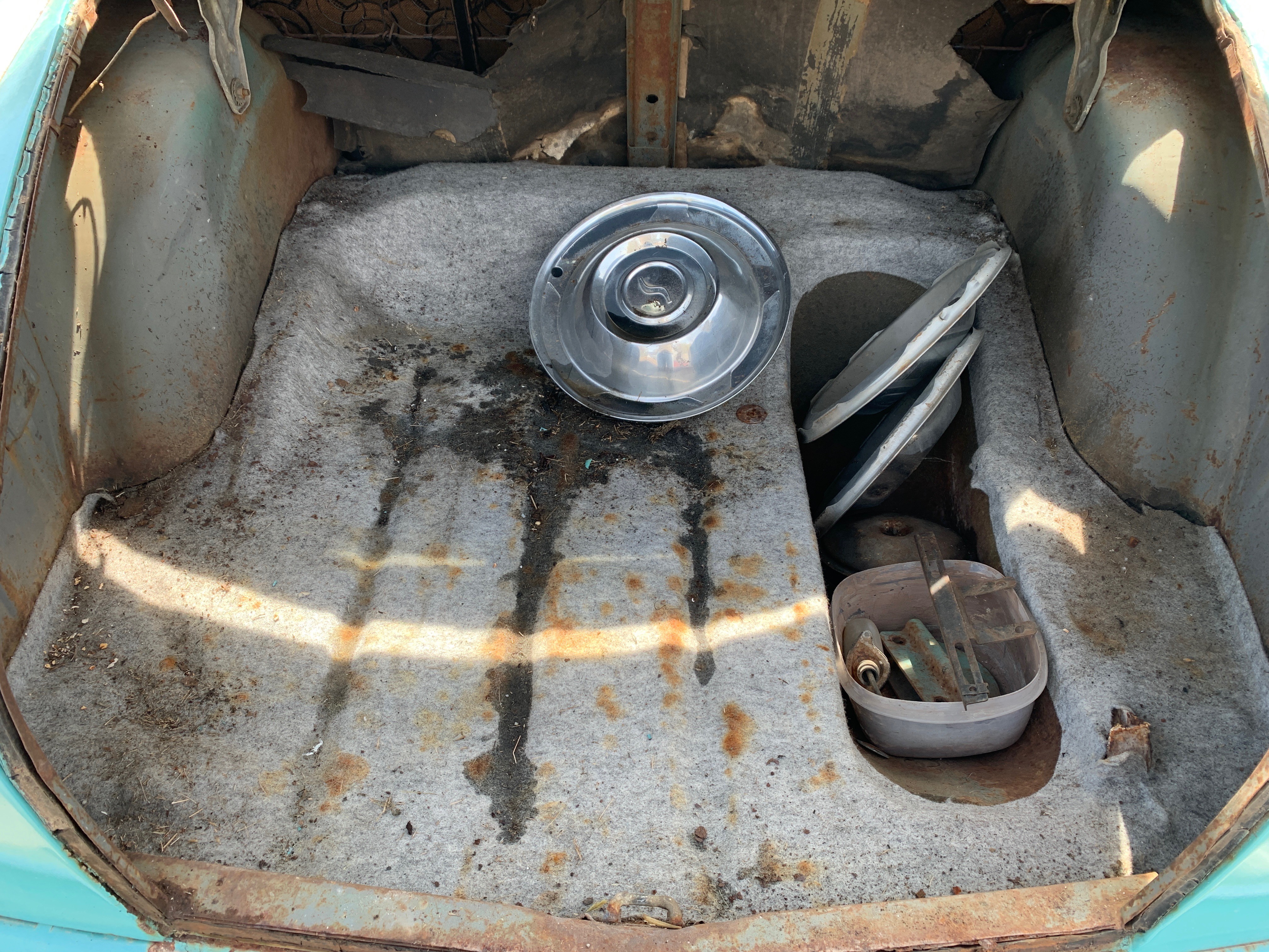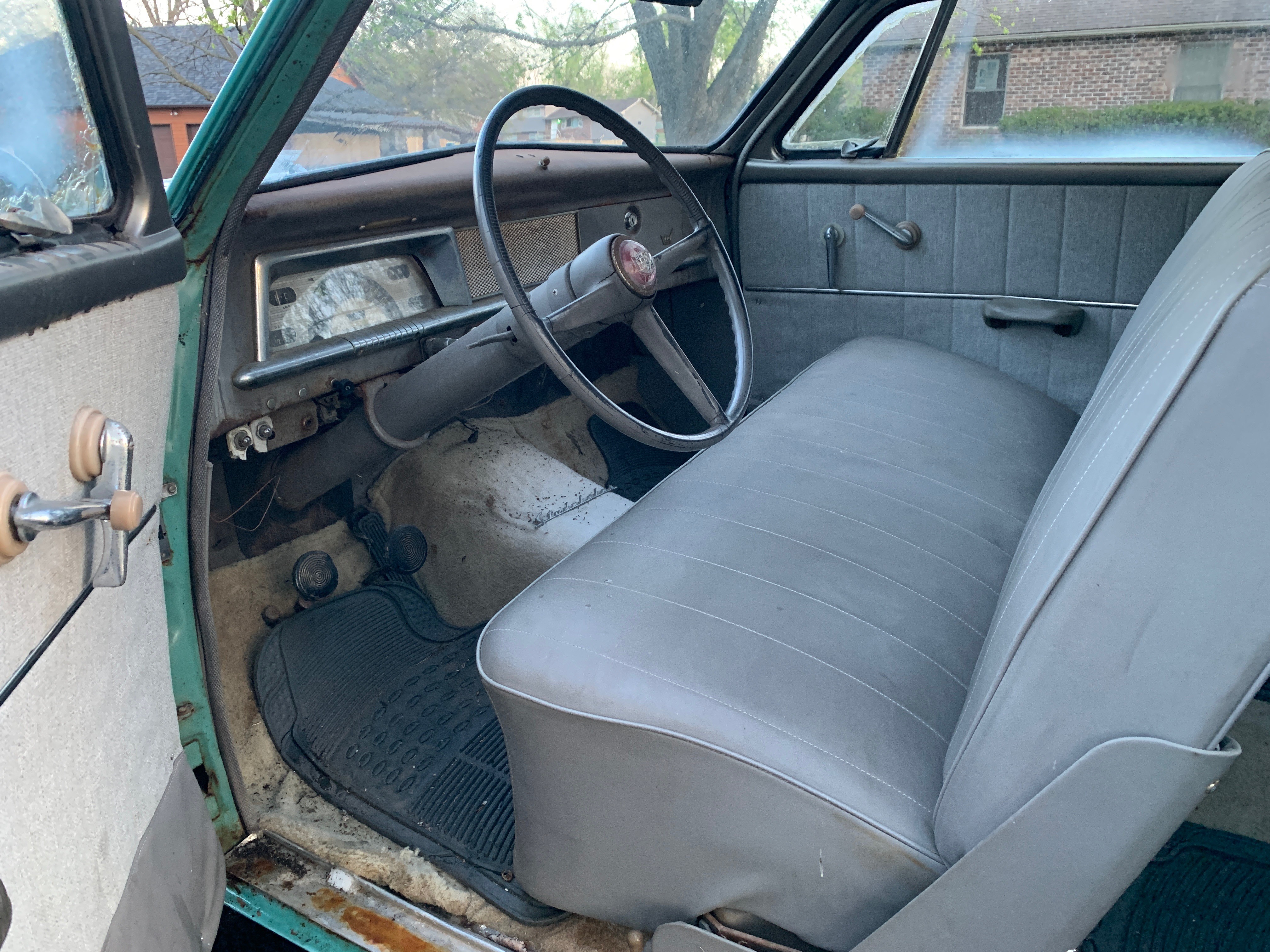 Robin's egg blue, grey cloth interior, 6 cylinder flat-head, 3 speed on solumn, 2 door post