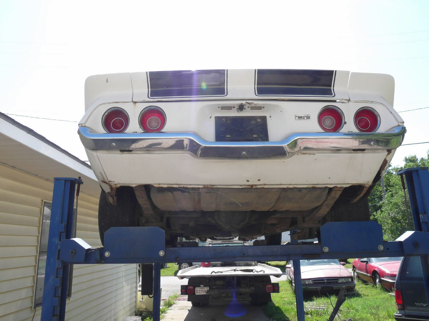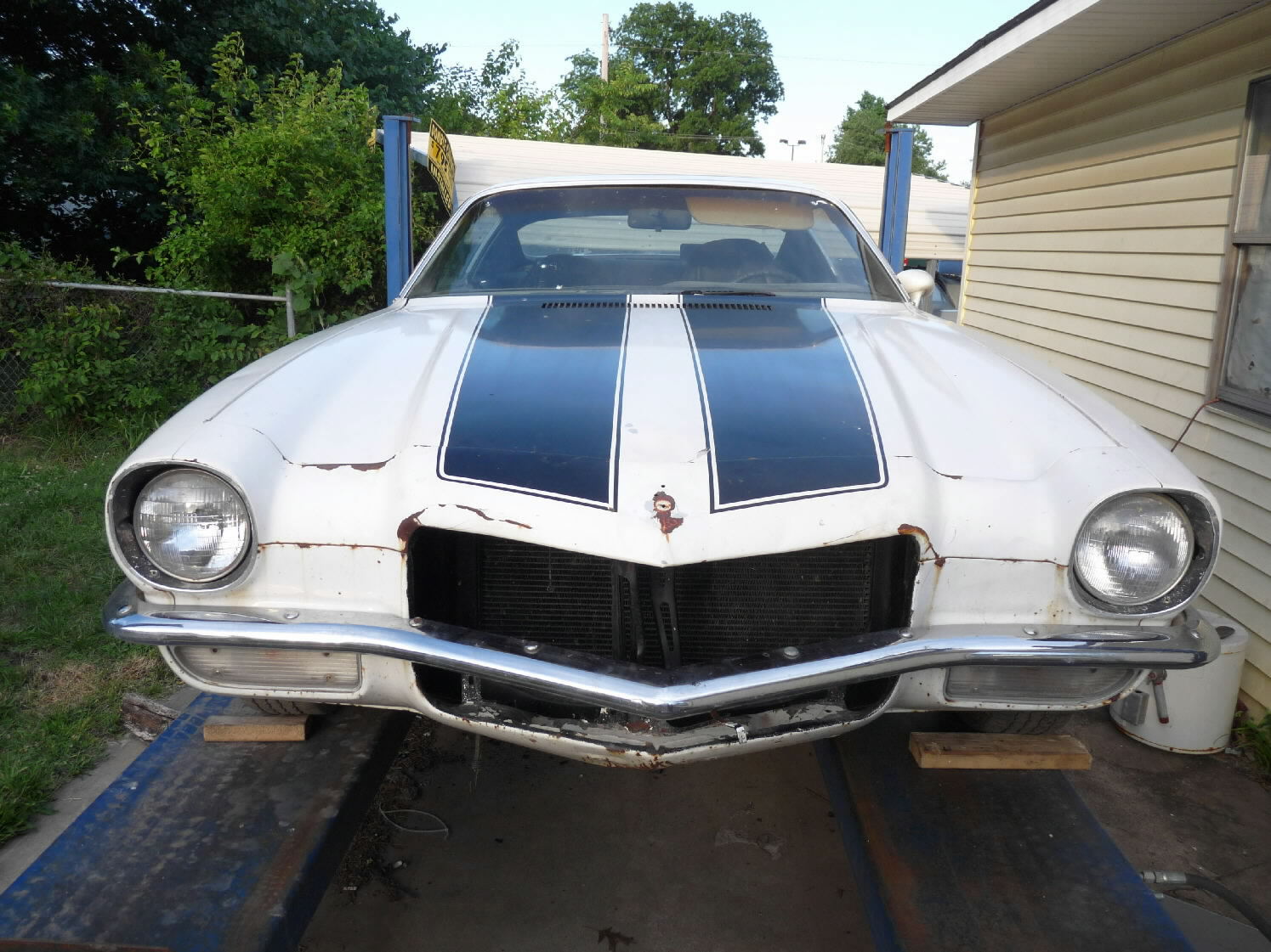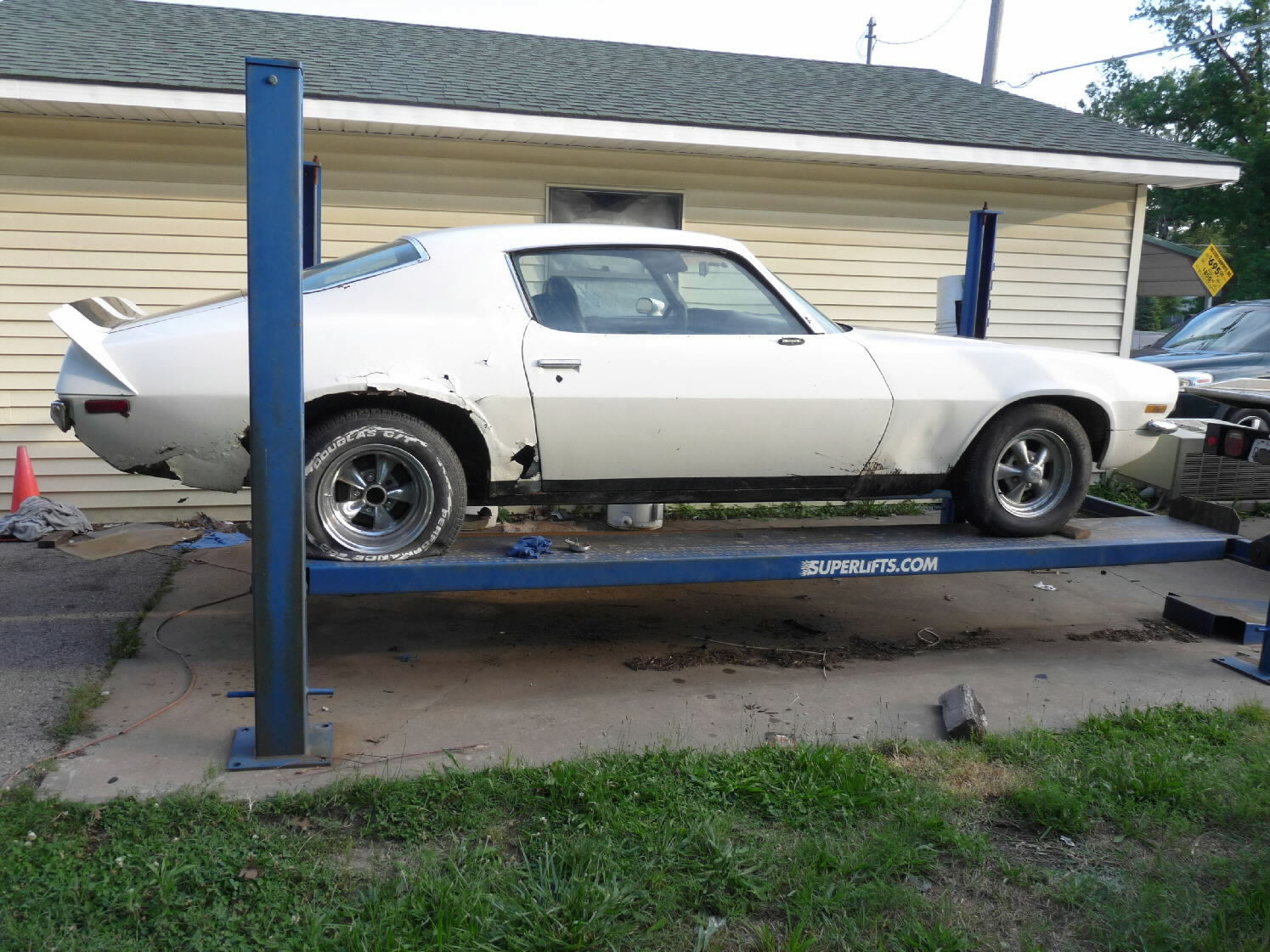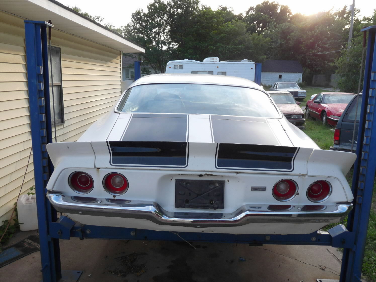 White w/black stripes, V-8, auto, runs & drives, needs driver's side quarter patch panel & passenger-side quarter panel
