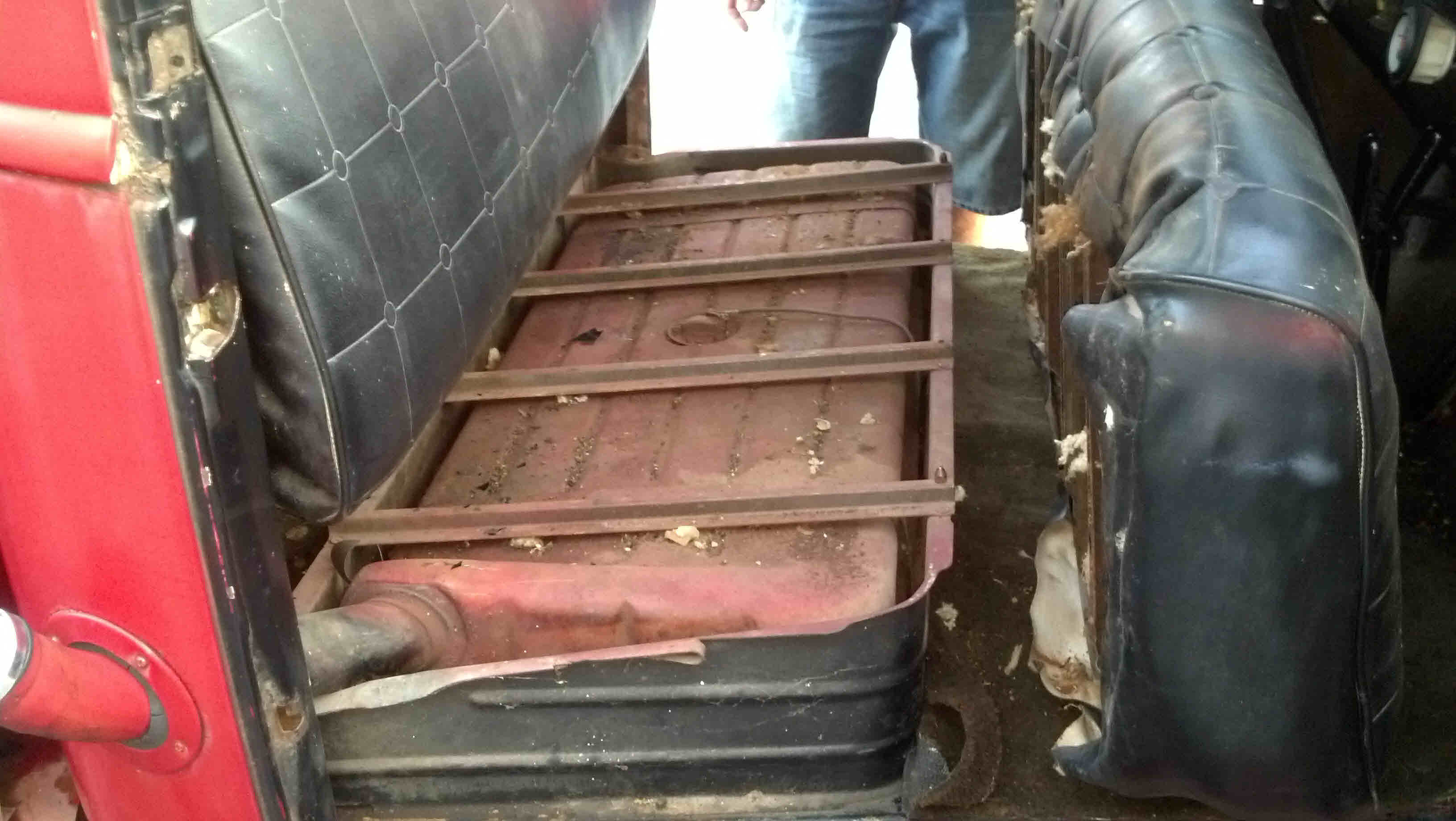 Red, 6 cylinder, 3 speed