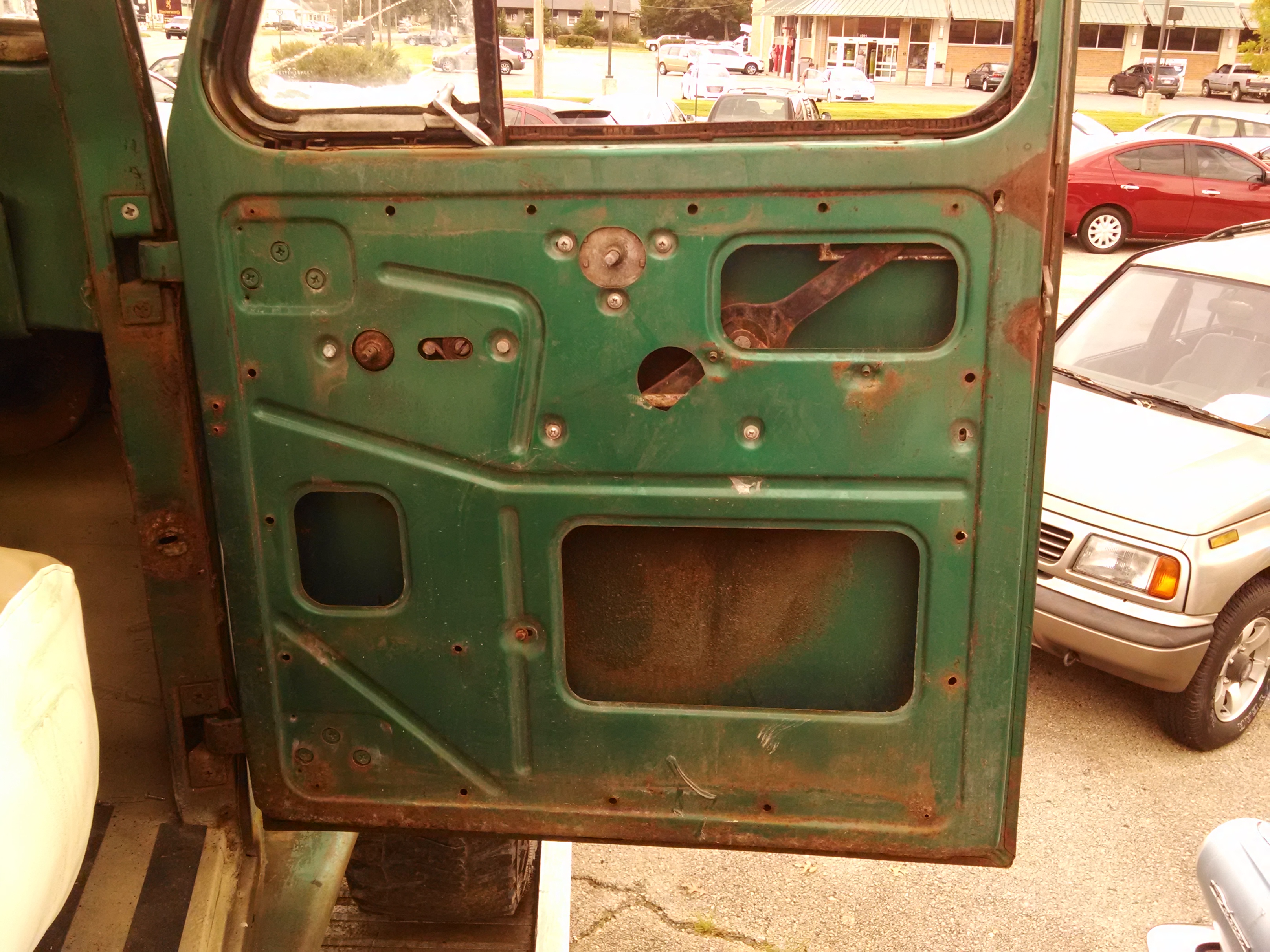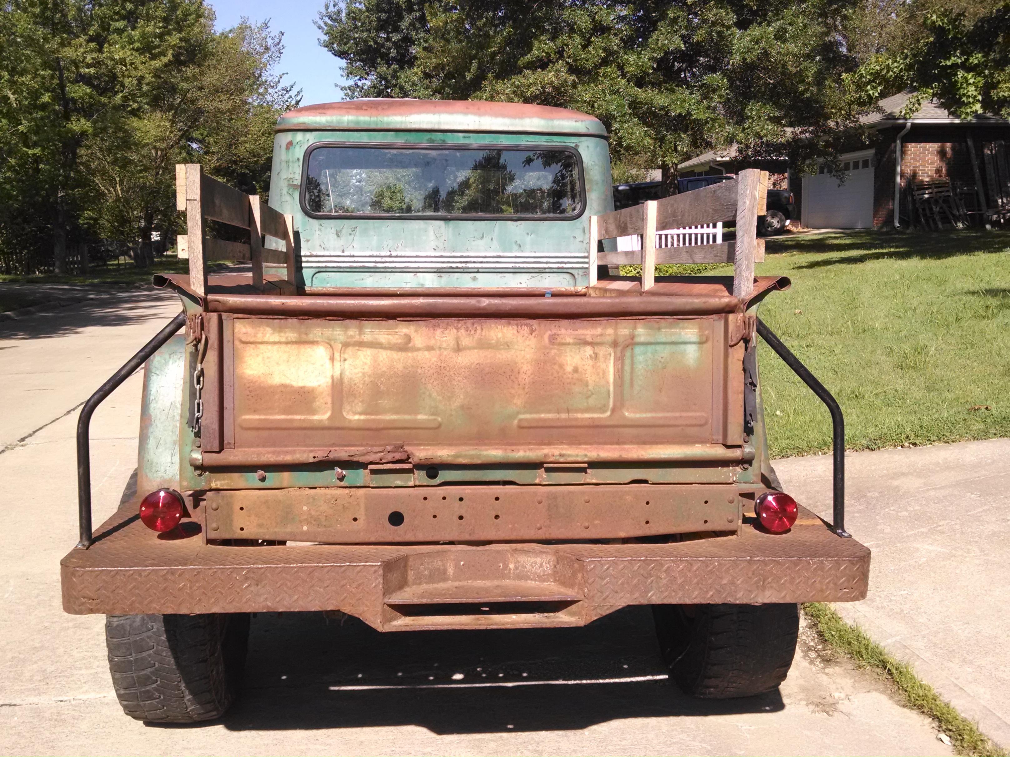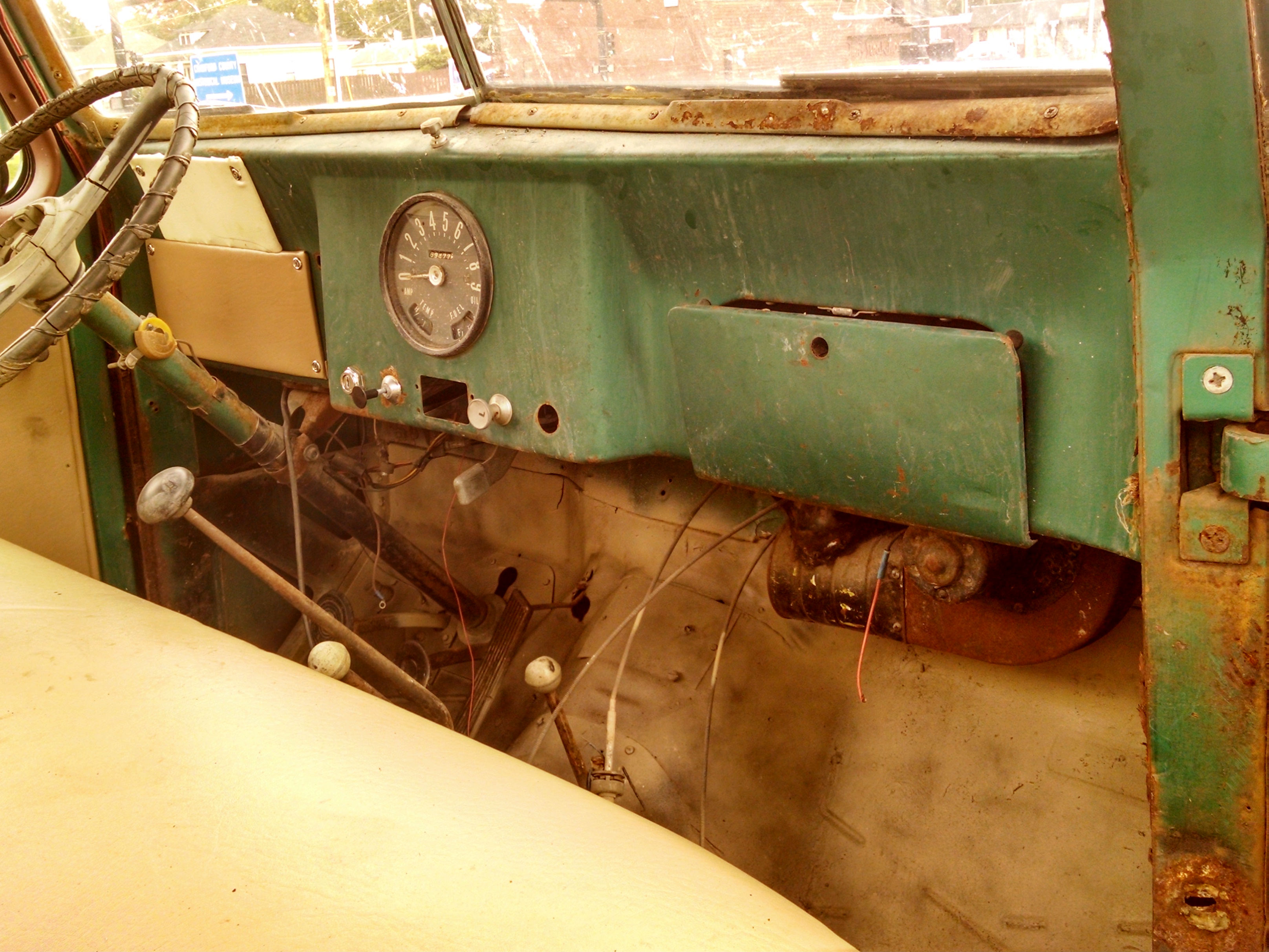 Bluish green, white/taupe interior, vinyl seat & floors, 6 cylinder in line, 3 speed, 4x4 w/lockouts, 2 door