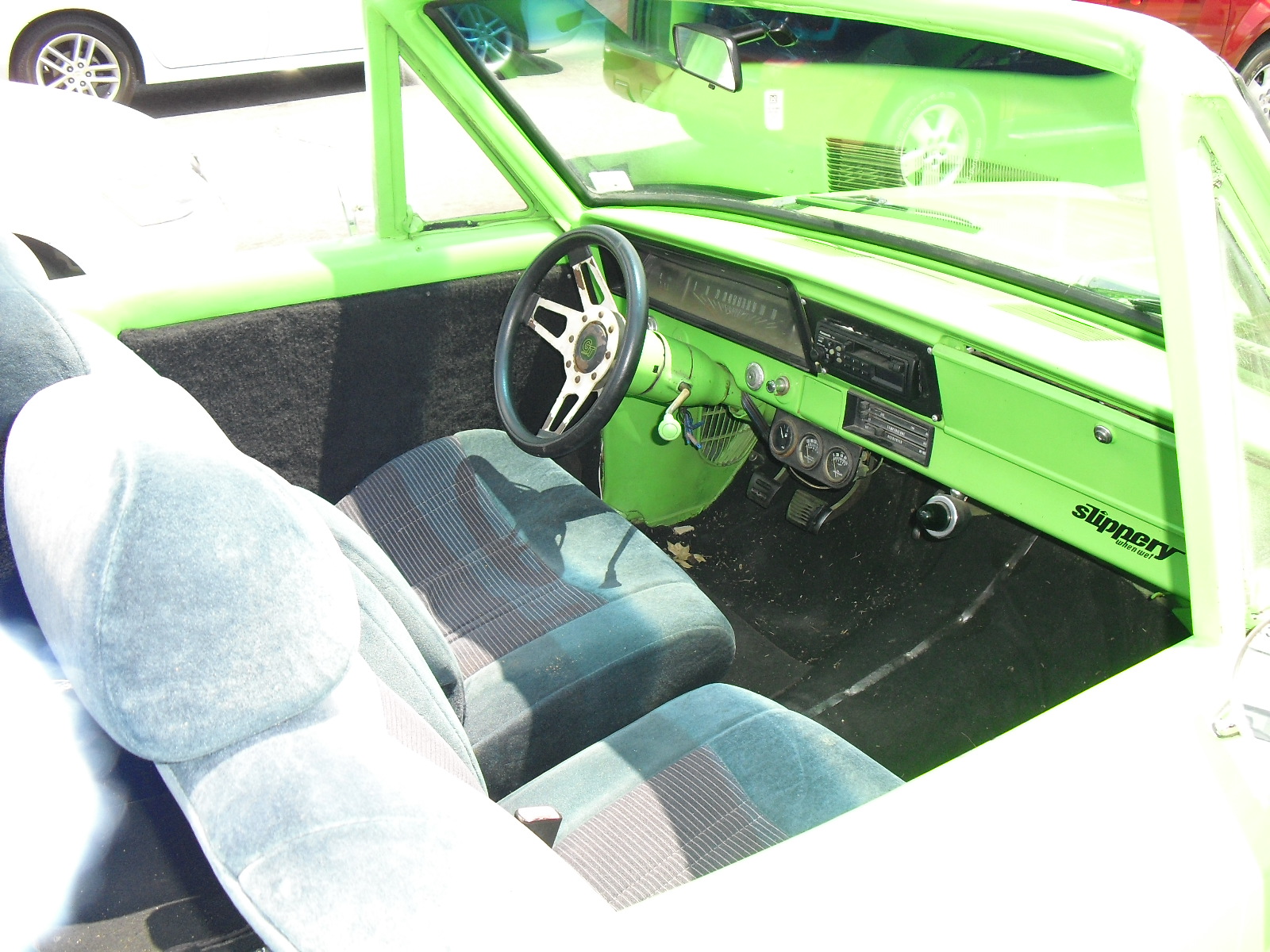 Sub-lime green, dark grey-green cloth interior, 6 cylinder (in line), 3 speed on the tree, no doors, no top, parade car/cruisin' car