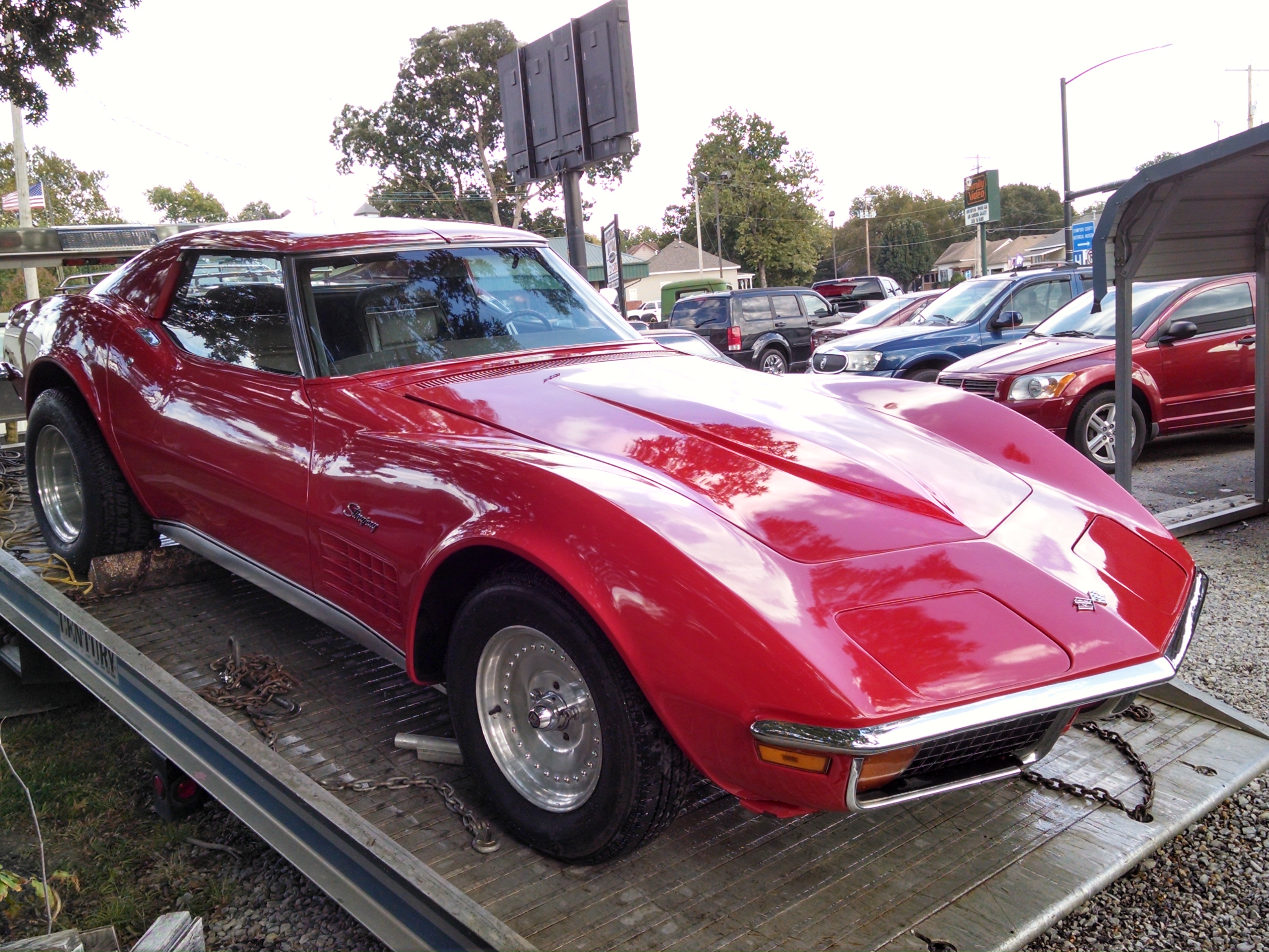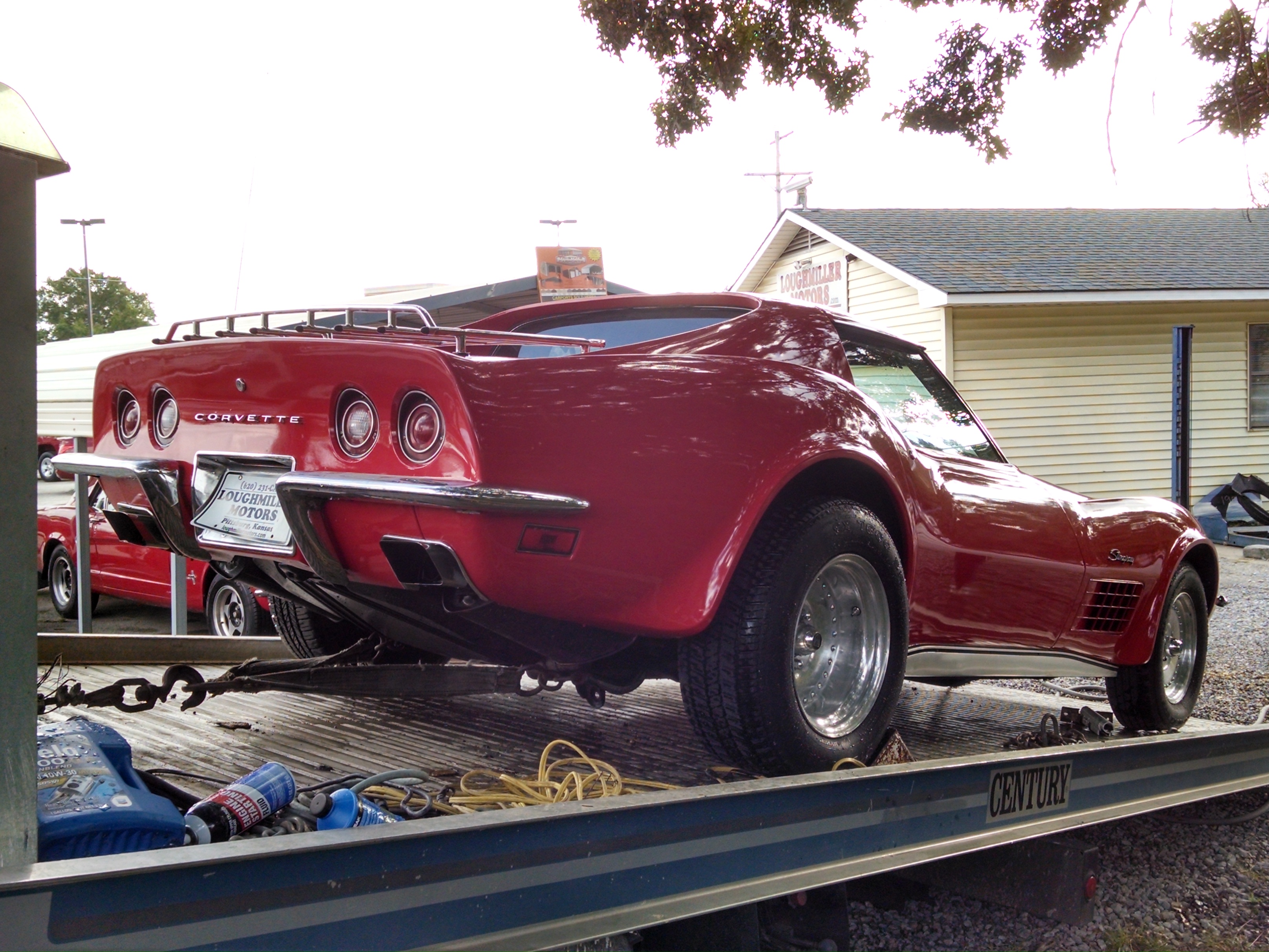 New red paint, saddle color interior, new carpet, Muncie 214 speed, 350 V-8, metal t-tops, telescoping steering wheel, am/fm, removeable rear window, new tires